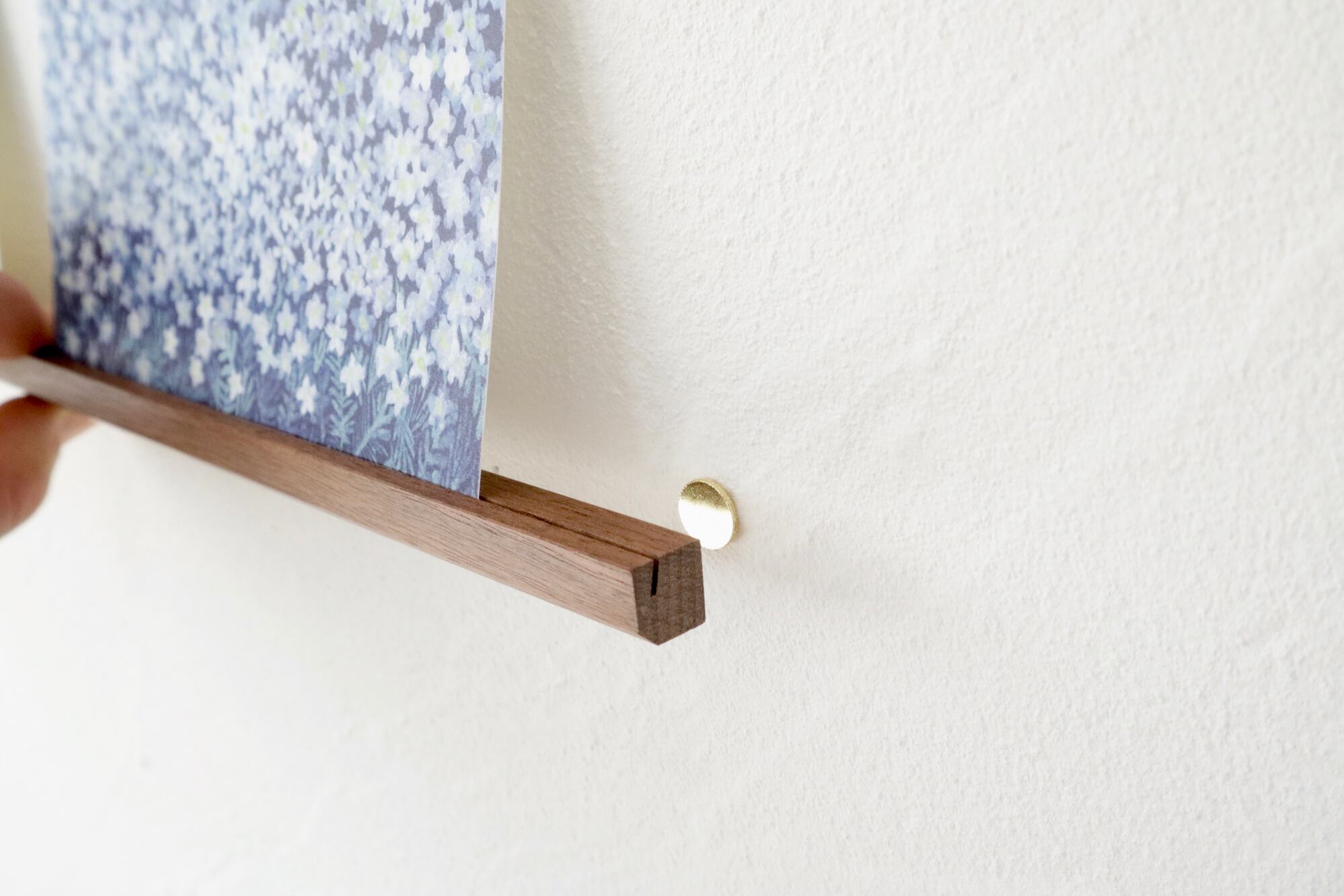③バーを手で支え、スリットにお好きなポストカードを入れて飾る。